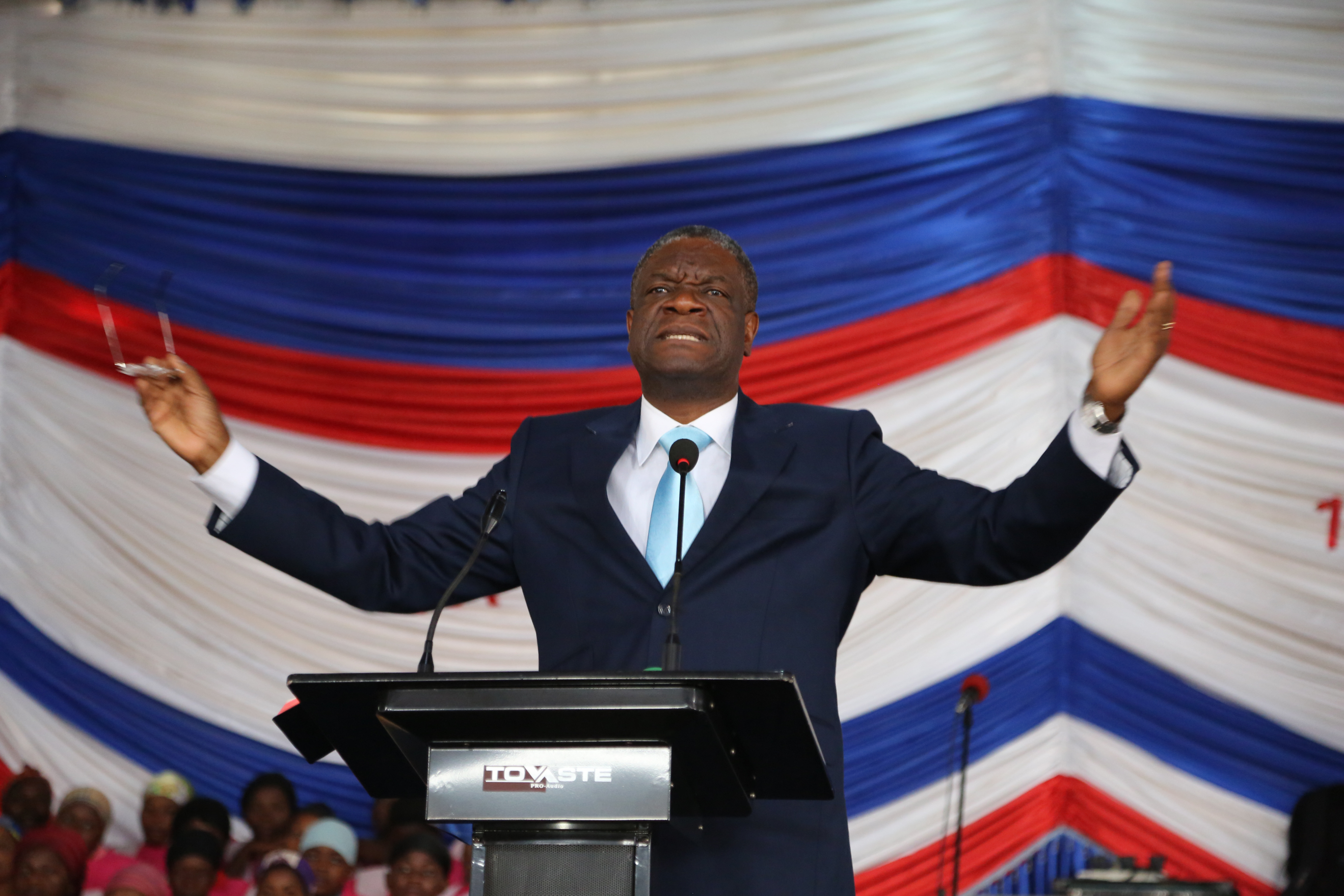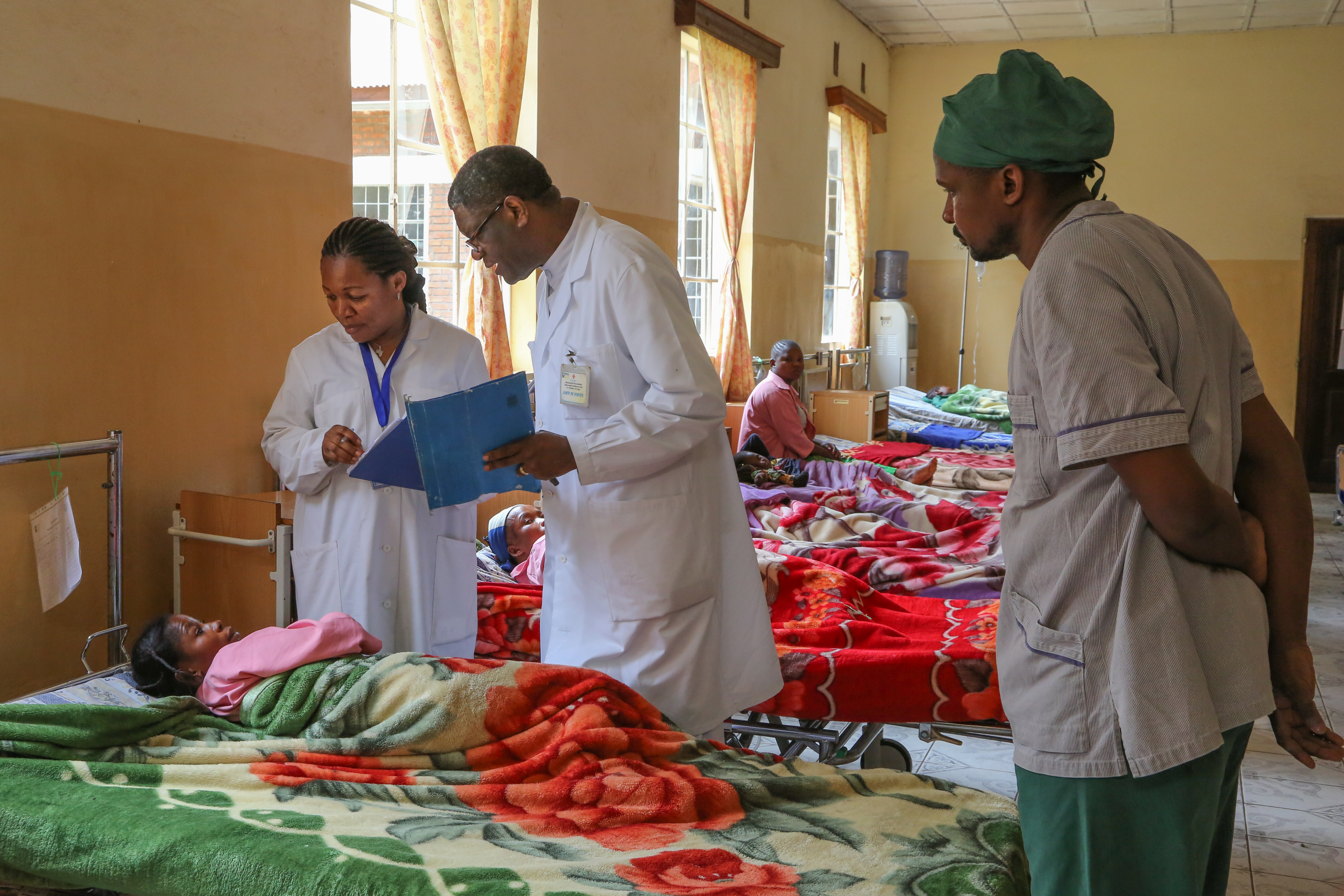 ムクウェゲ医師は1998年、コンゴ東部のブカブにてパンジー病院を設立し、これまで4万人以上のレイプ被害者を治療し、精神的ケアを施し続けてきた。それ以外に、国連本部をはじめ世界各地でレイプ被害に関する演説を行い、女性の人権尊重を訴えてきた。その活動が国際社会で評価され、これまで国連人権賞(2008年)、ヒラリー・クリントン賞(2014年)、サハロフ賞(2014年)などを受賞した。ノーベル平和賞受賞者の有力候補にも数回挙がっており、2016年5月のタイム誌に、「最も影響力のある100人」に選ばれた。