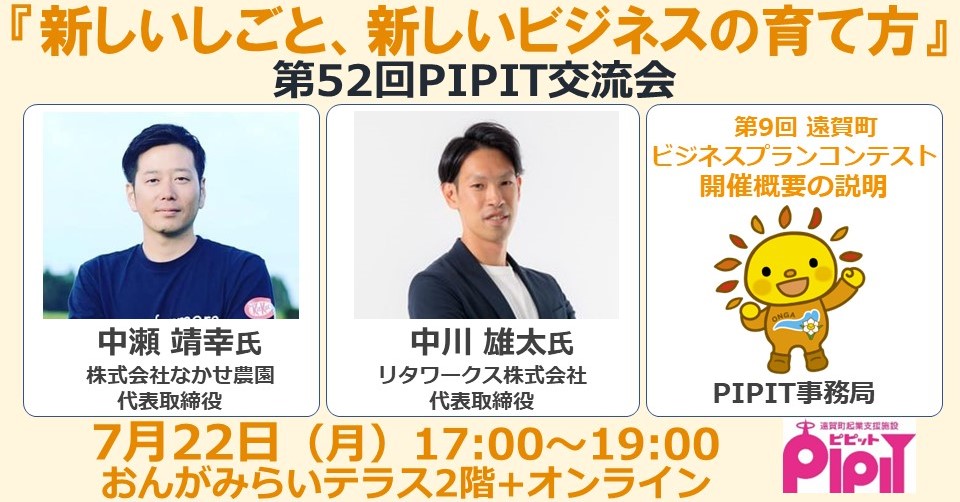 また、7月中旬から公募開始予定の「第9回遠賀町ビジネスプランコンテスト」の概要説明も行いますので、応募を考えている方、興味をお持ちの方はぜひご参加ください。