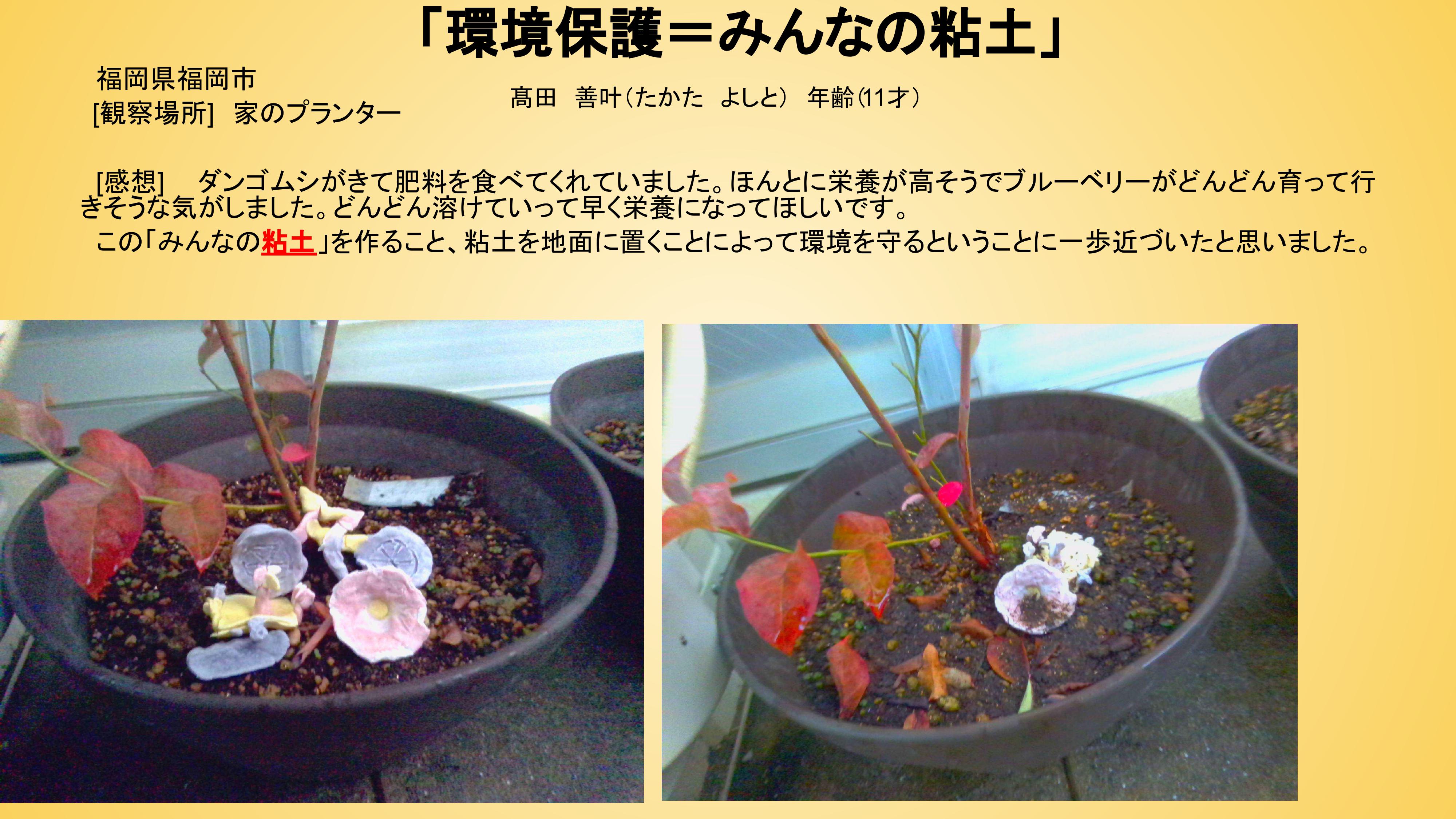 ◇地域賞 『自然にやさしいねんどが土にかえる様子を観察しよう』