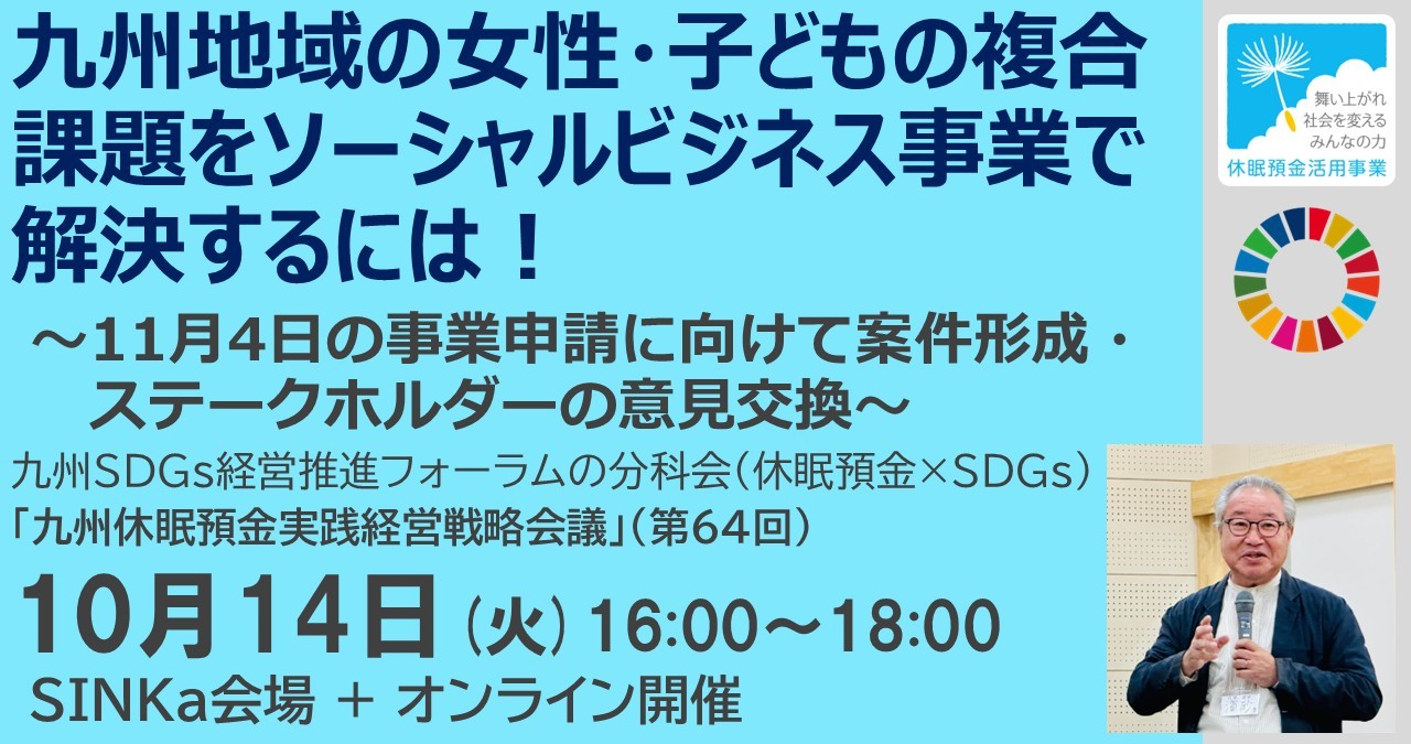 【九州地域の女性・子どもの複合課題をソーシャルビジネス事業で解決するには!】 ~11月4日の事業申請に向けて案件形成・ステークホルダーの意見交換~ アンケートの回答をもとに、休眠預金活用事業の案件形成についての意見交換を行います。