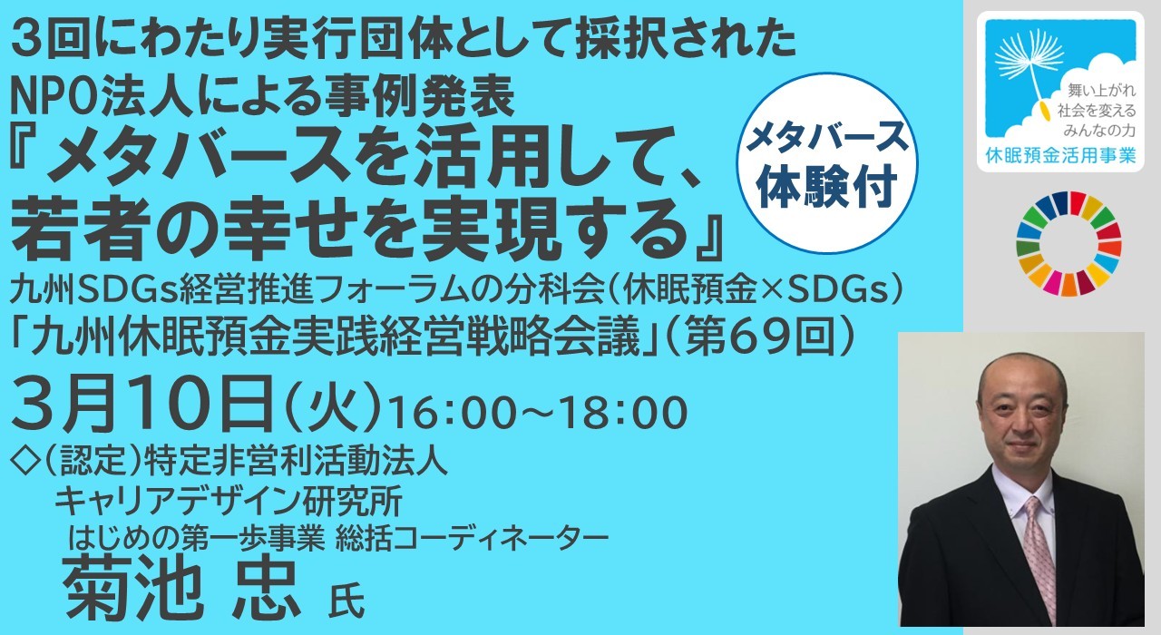 九州休眠預金実践経営戦略会議(第23回)より「九州SDGs経営推進フォーラム分科会 休眠預金✖️SDGs 」の位置づけで開催し、制度の周知を進めて参ります。