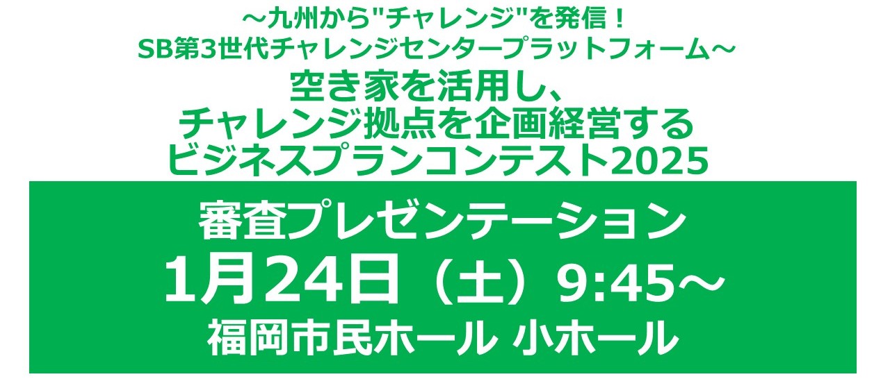 今回福岡市で開催する「SB次世代フォーラム2026」の一部として、公開プレゼンテーションによる審査を行います。会場参加者にも審査に加わっていただき、審査の参考にさせていただきます。どうぞご参加ください。